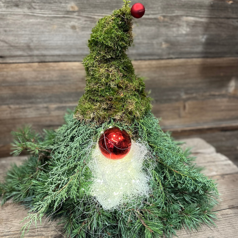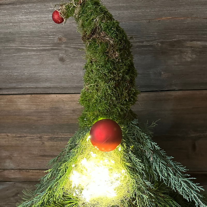 In dieser Anleitung zeige ich dir, wie du in wenigen Handgriffen einen bezaubernden Weihnachtswichtel aus Naturmaterialien bastelst. Diese winterliche Deko mit leuchtendem Bart ist perfekt für draußen vor der Haustür oder auf der Terrasse. Mit Tannenzweigen, Moos und Sisal entsteht eine natürliche Optik, die Wärme und Gemütlichkeit ausstrahlt. Eine Lichterkette sorgt für ein stimmungsvolles Leuchten in der dunklen Jahreszeit. Ideal für alle, die ihre Weihnachtsdeko nachhaltig und kreativ gestalten möchten.