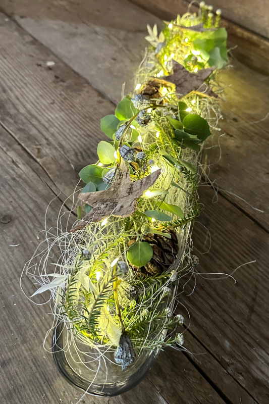 Mit dieser DIY-Anleitung kannst du deine Winterdeko selbst gestalten und eine längliche Glasschale stilvoll und pflegeleicht dekorieren. Natürliche Materialien wie Eukalyptus, Phylica und Birkensterne sorgen für eine gemütliche, winterliche Atmosphäre, während eine Lichterkette warmes Licht in deine Dekoration bringt und für eine festliche Stimmung sorgt. Die schlichte Winterdeko eignet sich perfekt für Esstisch, Sideboard oder Couchtisch und lässt sich mit wenig Handgriffen umsetzen. So kannst du dein Zuhause in eine elegante Winterlandschaft verwandeln und gleichzeitig kreative DIY-Tischdeko für den Winter genießen. Entdecke einfache Ideen, wie du mit natürlichen Materialien und Lichterketten eine wunderschöne Winterdeko selber machen kannst.